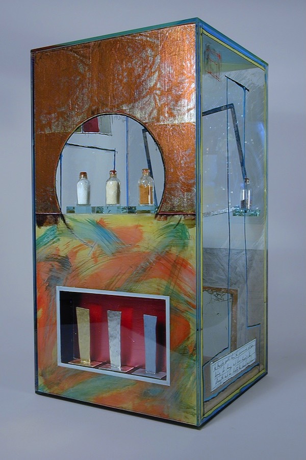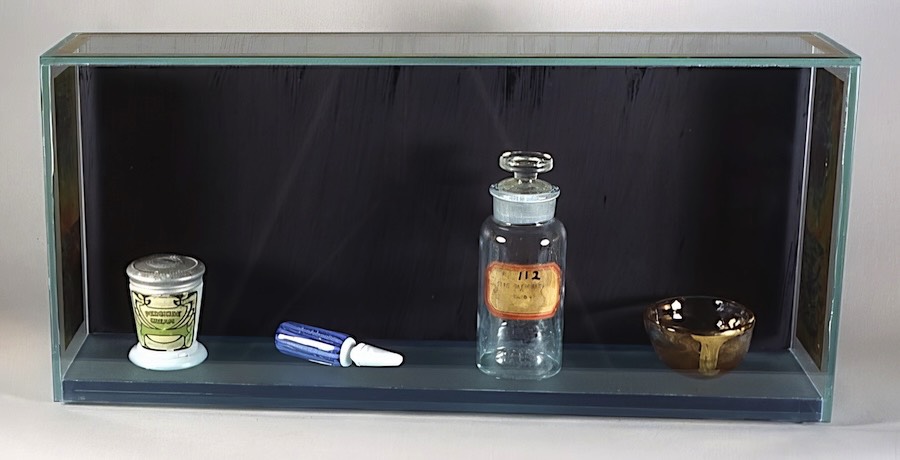 Medicinal Vessels: Antique objects, reverse painting on plate glass $1,500 15 x 4 x 12