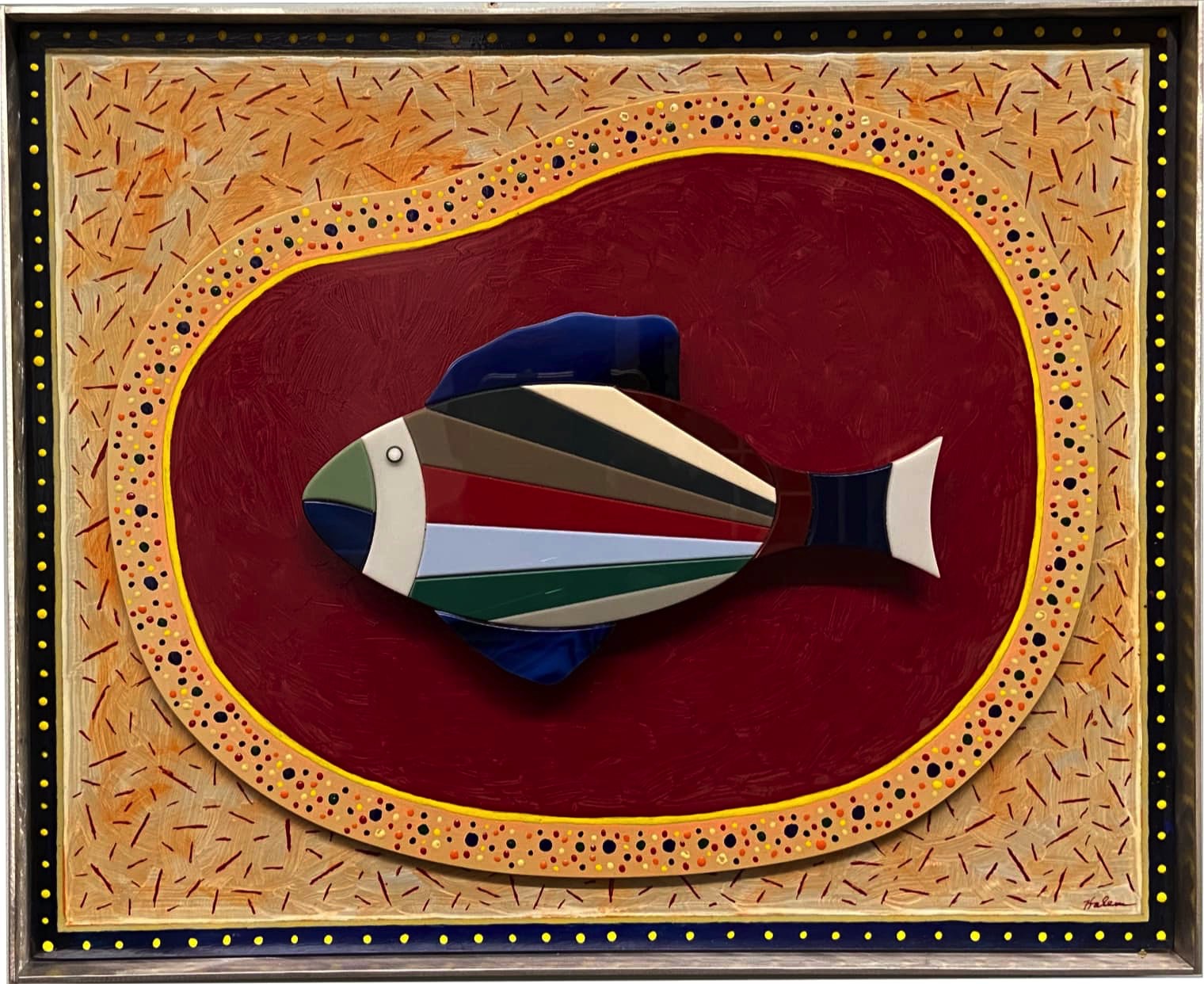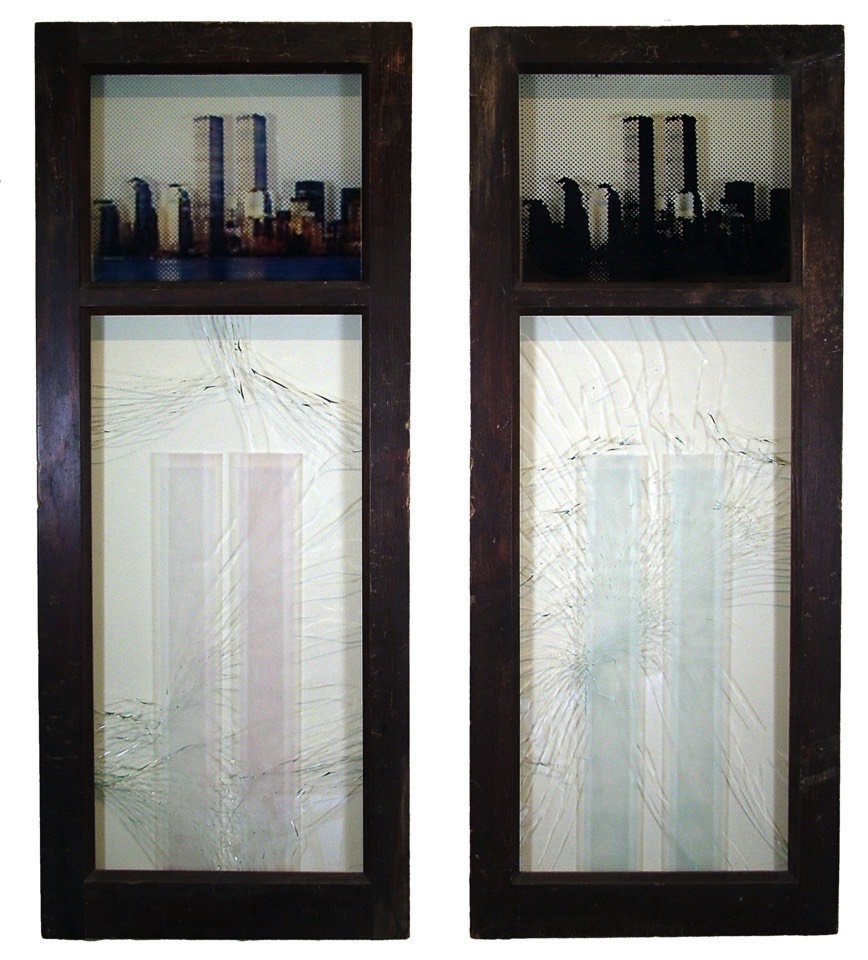 I was always captivated by the twin spires of the World Trade Center when viewed against the skyline of NYC. Expressing my grief through my art depicting their destruction was, at best, a challenging endeavor. Over time, as I delved deeper into the events of that fateful day, I became fully immersed in the narrative of their destruction. My expression of grief is conveyed through my simplification of the WTC into geometric rectangles placed on the opposite side of safety glass that is then fractured. The fractured glass is a metaphoric representation of the destruction of the towers.
