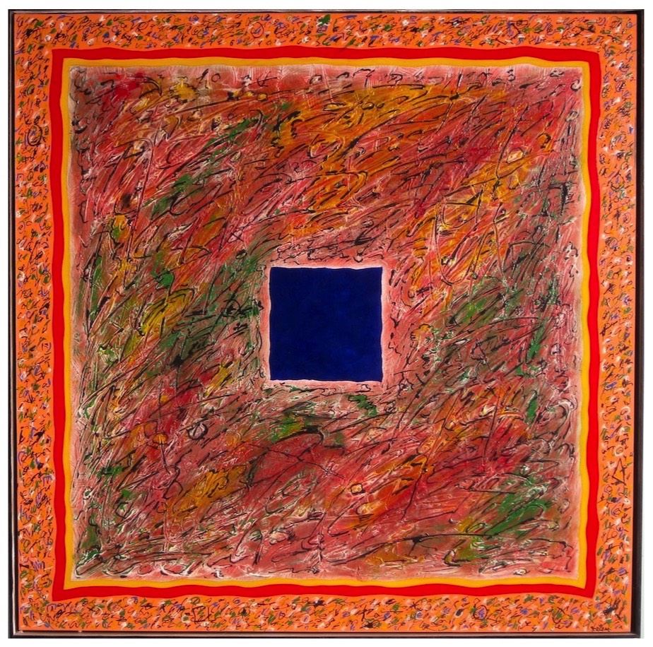 Fading to Blue: Fired glass enamels on Vitrolite. $1,500. 22 x 22