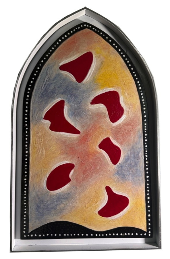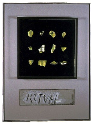 Ritual: Shards from broken vessel, colored sheet glass. $1,500. 19 x 25
