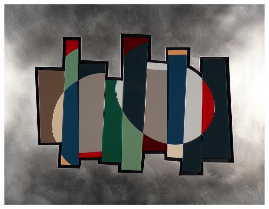 Puzzle: Assembled Vitrolite glass, brushed aluminum. $1,500. 22 x 17