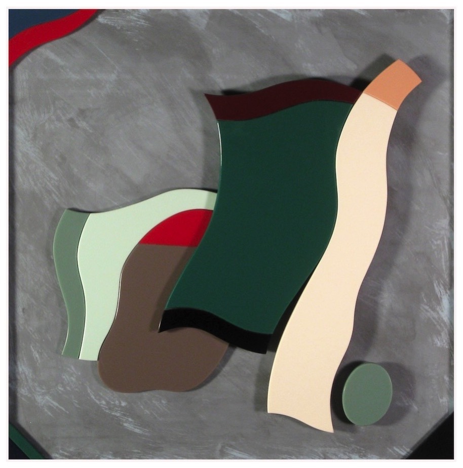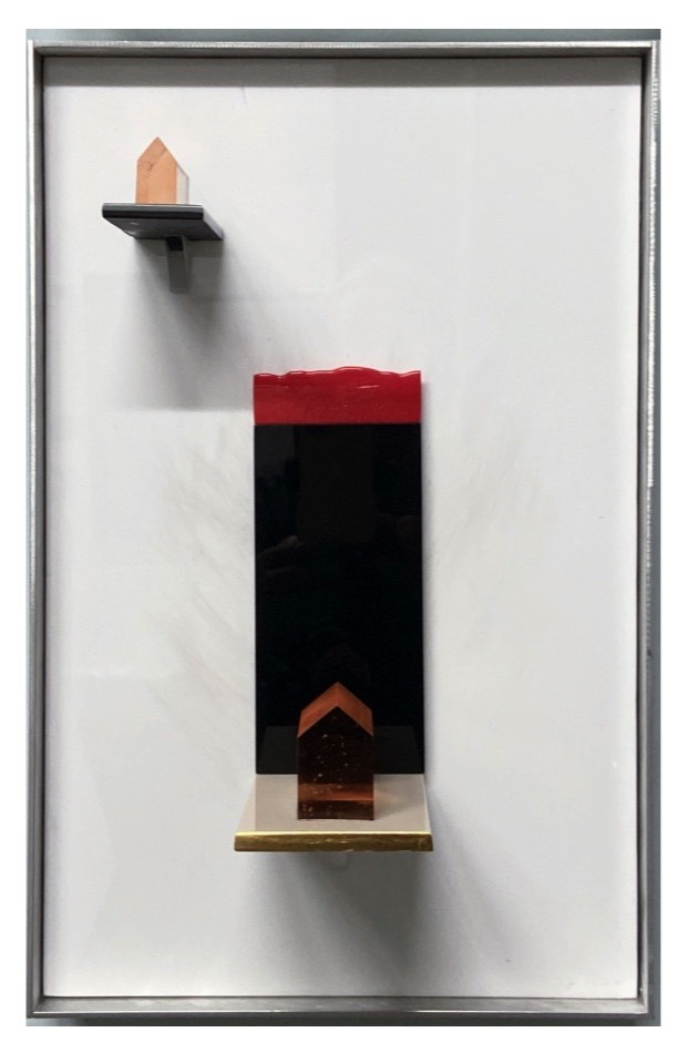 Floating: Assembled Vitrolite glass, wooden frame. $1,550. 30 x 25