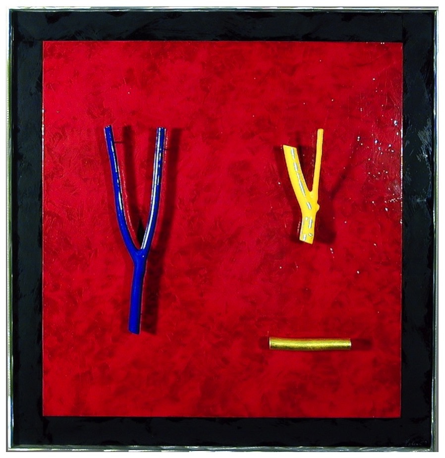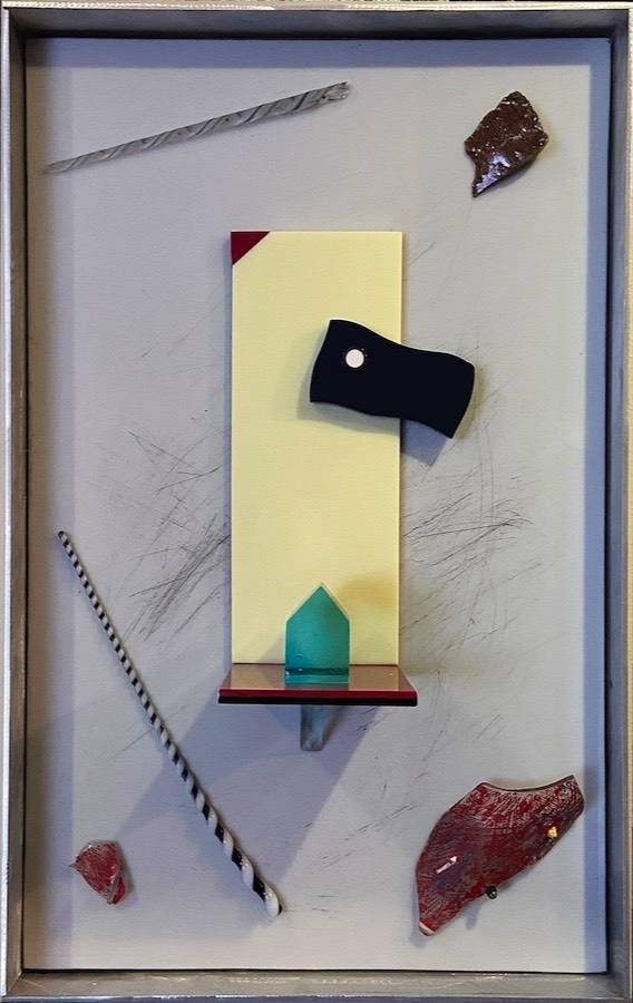 Roman Objects: Blown fish and bottle on acrylic background. $2,000. 17 x 25