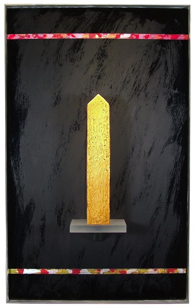 Shards: Shards on laquered wood. $1,000. 13 x 16